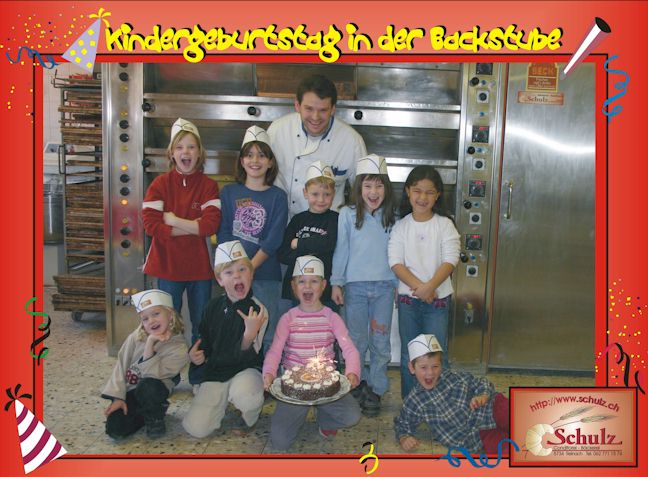 "der absolute Hit im Hause Schulz" Feiere Deinen Geburtstag in einer richtigen Backstube mit Teigen, Backen, viel Spiel und Spass und einer Mega- Geburtstagstorte. Deine Freunde werden staunen!