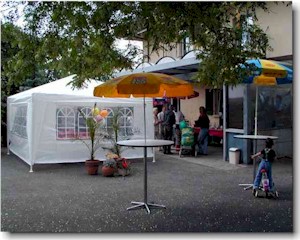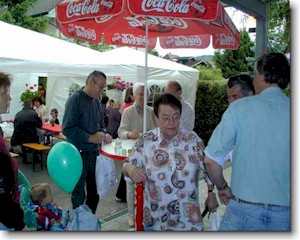 "Ueber 450 Personen am rauschenden Fest" Am 20. Mai 2000 fand auf unserem Gelände das versprochene grosse Fest statt, wo wir mit unseren Kunden auf eine gemeinsame Zukunft anstossen durften. Erstaunlich viele Nachtschwärmer liessen sich die Gelegenheit nicht entgehen, einmal von nahe ganz genau zuzuschauen, wie wir unsere Brötchen backen. Wir waren ja schon ein bisschen überrascht, dass knapp 50 Personen schon um 04 Uhr morgens aus dem Bett gestiegen sind, um Ihren Bäcker bei der Arbeit zuzusehen, andererseits ist das der Beweis für uns, dass wir mit der "Nacht der offenen Tür" wohl voll ins Schwarze getroffen haben. einige Eindrücke Die Gewinner in unserem Schätz- Wettbewerb 2 Monate lang jeden Tag ein Gratisbrot aus der Bäckerei Schulz erhalten Jürg Bertschi, Reinach und Urs Lehner, Reinach Weitere Gewinner sind Stefan Linsi, Reinach; Hannes Piringer, Beinwil am See und Stefanie Glarner, Reinach Wir danken allen Helfern für Ihren Einsatz! Wir werden sicher noch einige Feste zusammen feiern können. Herzlichen Dank unseren Hauptsponsoren: