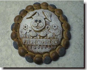 Osterfladen ( Reiskuchen) Spiegelei (kleiner Reiskuchen mit Aprikose) Ostertauben (Colomba di Pasque) Biscuithasen Schoggieier (gefüllt mit Pralinen) originelle Schoggihasen Oster - Partybrot Ostertorten Zopfhäschen